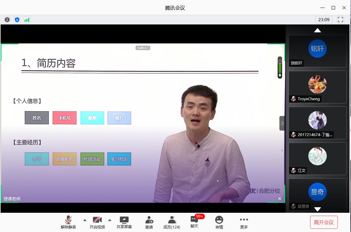简历制作指导。学院于六月中旬开展了简历制作大赛,比赛共收集到同学们的简历172份,经过简历制作线上集中指导,一对一修改点播,优秀简历评比展示等环节,王润清等三位同学获得一等奖,李榆烨等五位同学获得二等奖,方海雯等十位同学获得三等奖。