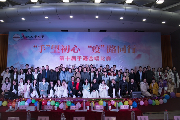 为弘扬“团结聚力,众志成城”的抗‘疫’精神,传播手语文化,传递人间温情,yL23411永利官网登录第十届“‘手’望初心,‘疫’路同行”手语合唱比赛决赛于12月20日在翡翠湖校区综合楼301举行。比赛邀请了安徽建筑大学心理学副教授、安徽省高校心理健康教育教学工作委员会副主任委员、安徽省政府心理应急救援总队特聘专家郑敏,合肥特殊教育中心政教处副主任、听障部副部长邓大柱,安徽农业大学心理中心主任孙蕾,校党委学生工作部副部长崔健,校心理健康教育与咨询中心主任李志明担任评委,部分学院的相关负责同志、辅导员老师担任嘉宾,比赛吸引了学校300余名同学参加。
