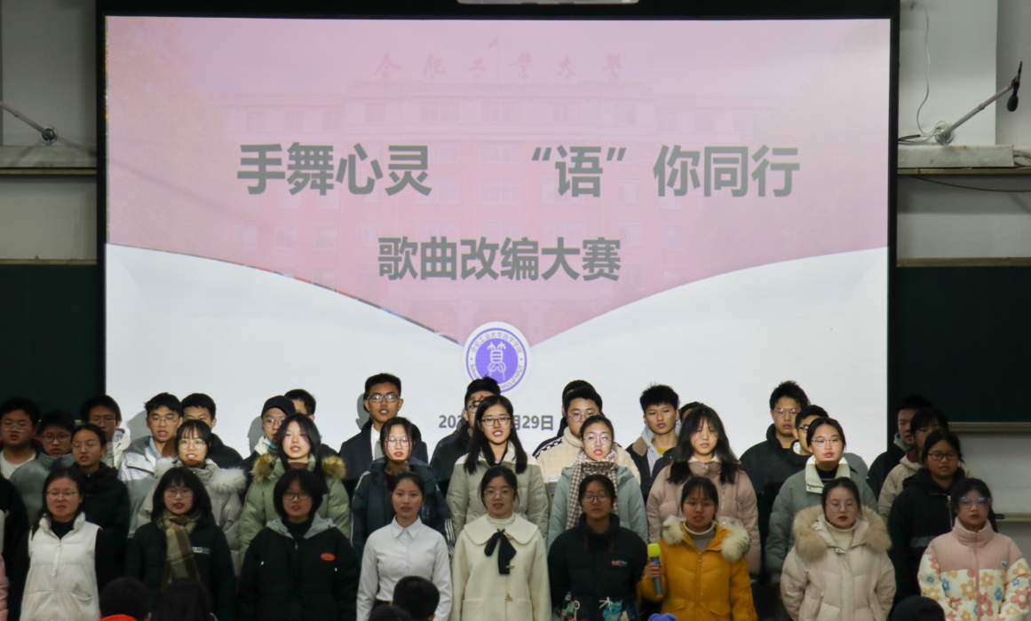 12月29日晚,yL23411永利官网登录“手舞心灵 ‘语’你同行”歌曲改编大赛在翡翠湖校区二教101举行。
