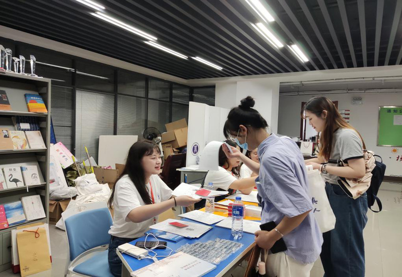 上午七点,志愿者穿着统一服装在清凉的晨风中到达集合地点。男生志愿者在一食堂前的广场上搭起帐篷,准备签到表和小推车;女生志愿者在科教楼B座16楼大厅搭好桌子,准备新生报道材料和物资。随着新生的陆续到来,志愿者们井然有序地忙碌起来,核对新生信息,帮助新生搬运行李;分发《研究生手册》、校园卡、防疫爱心包等入学材料与防疫物资。新生纷纷表示,yL23411永利官网登录的迎新工作充满爱心、让人舒心,十分暖心!