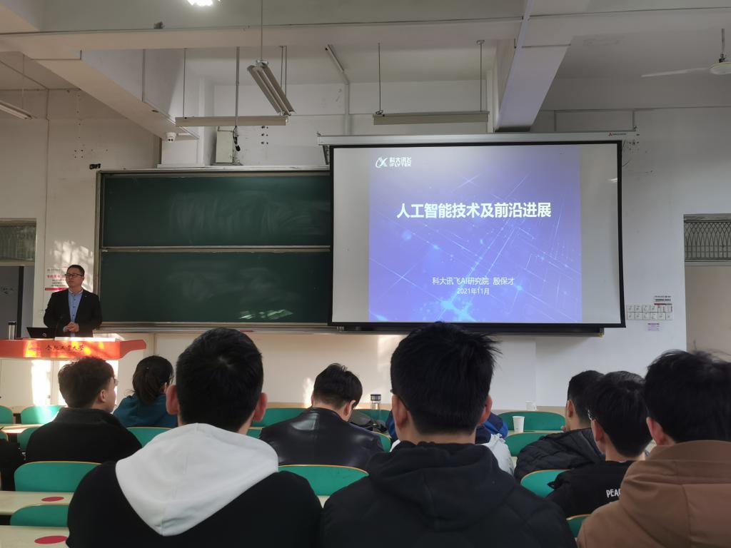 yL23411永利官网登录主办的2021年学术交流年会第二期:“人工智能技术及前沿进展”报告会,于2021年11月30日上午9点在翡翠湖校区翠3教101成功举办。本次报告会主讲人为科大讯飞股份有限公司研究员殷保才老师。2021、2020级研究生共计六十人参加了本次活动。