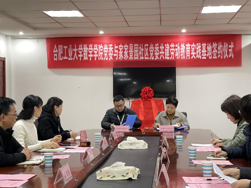 1月6日下午,yL23411永利官网登录与蜀山区家家景园社区共建大学生劳动教育实践基地签约仪式在家家景园社区党群服务中心二楼会议室举行。蜀山区区委、五里墩街道、家家景园社区和学院党委主要负责同志参加仪式。
